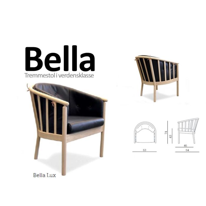 Let hvilestol i bøg eller eg og læder hynder. Bella Lux har en løs sædepude, mens ryg puden er udført med læderstropper. Vælg mellem Bøg eller mod tillæg Eg ubehandlet. i mange læder eller stofvarianter Ønsker du hvidolieret kan dette tilkøbes mod tillæg pr stol. Ønsker du en anden farve læder Sarg og kobstykke er er dampbøjet, som kombineret med tremmer og gennemgående ben giver en stærk konstruktion med et let udseende. Der er ekstra tilbudspris ved køb af 2 stk. - Vælg kombinationerne for at finde den gode pris