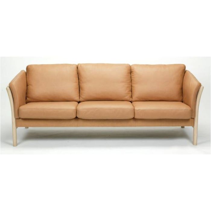 1501 3 pers tremmesofa sæt med bøg stel og stærk, blød naur læder