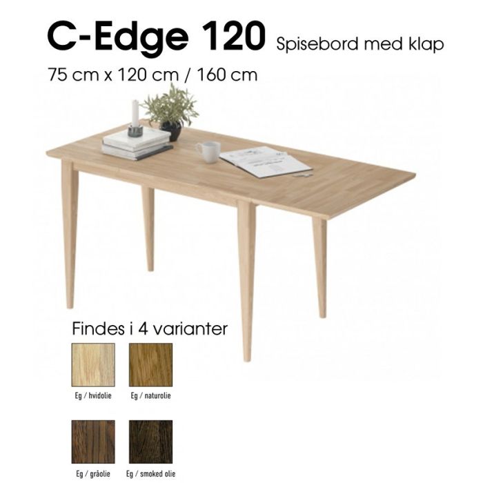 Let spisebord med klap i egetræ med koniske træben i dansk design Mål 75 cm x 120 cm med klap 160 cm