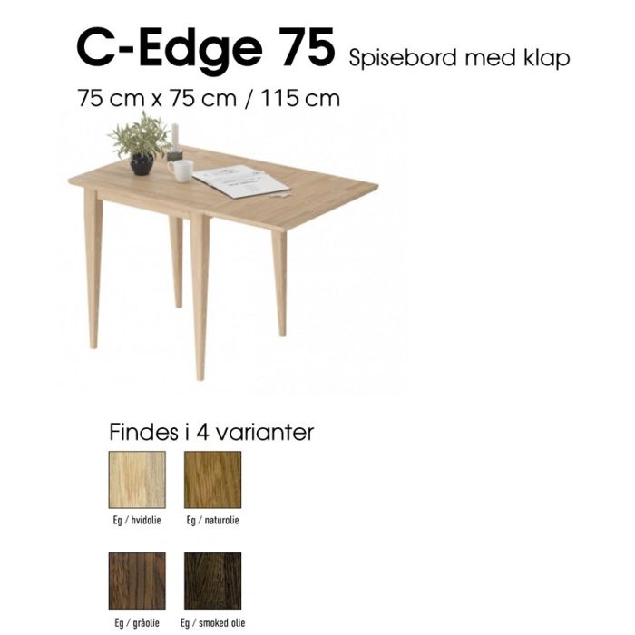 Let spisebord med klap i egetræ med koniske træben i dansk design Mål 75 cm x 75 cm med klap 115 cm