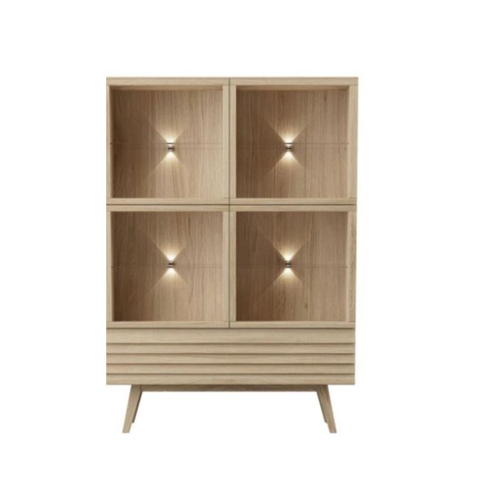 Flot ny Vitrine skab i eg hvidolie med 2 x push up skuffer med soft close sL124 x H177 x D40 cm