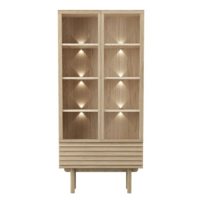 Flot ny Vitrine skab i eg hvidolie med 2 x push up skuffer med soft close sL124 x H177 x D40 cm