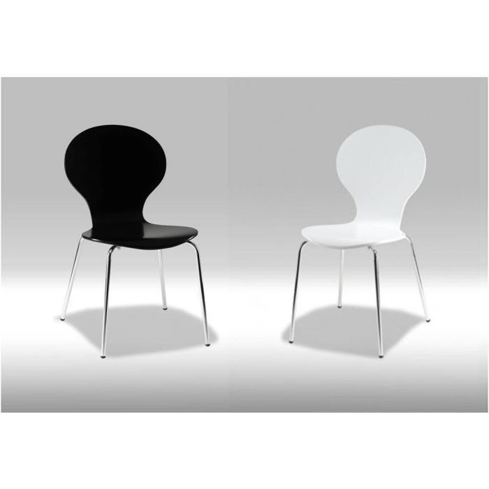 Spisebords skal-stol i hvid 11 lags krydsfiner.Stel i krom. Mål B49 x D52 x H86 Sædehøjde: 45 Sædedybde: 38 Vægt: 3,7kg. Findes i sort eller hvid