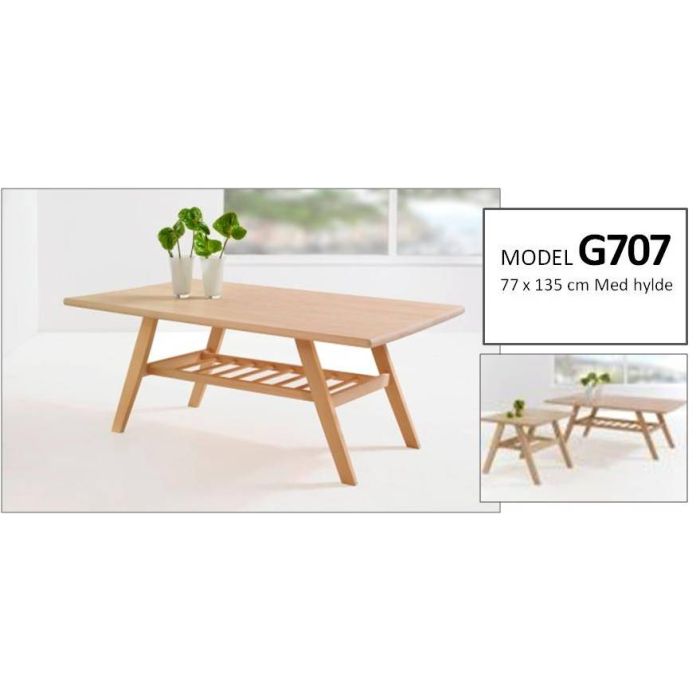 Stilfuld sofabord med hylde 77 x 135 fra Dansk fabrik. Laves i Bøg eller Eg i Olie, Sæbe eller lak behandling