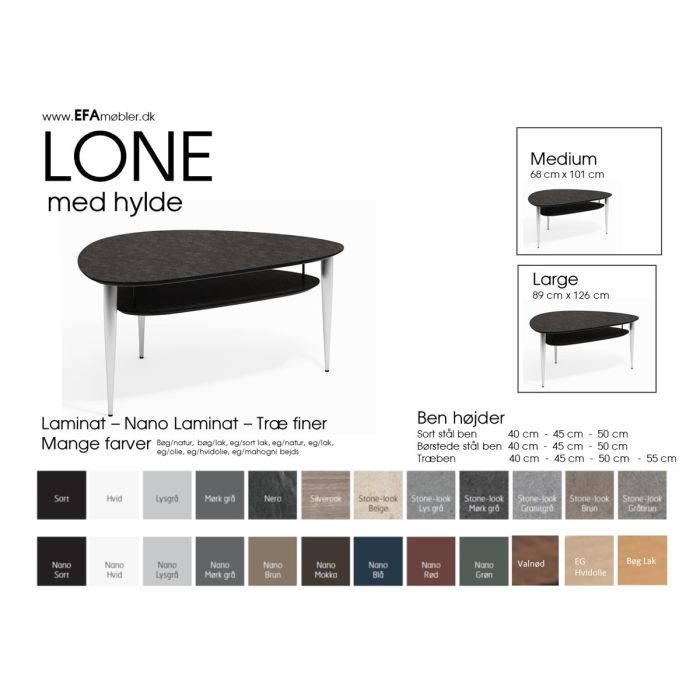 Lone Dråbe er en del af en serie hvor man kan finde bordstørrelser til hele stuen og fås et ens indtryk hele.