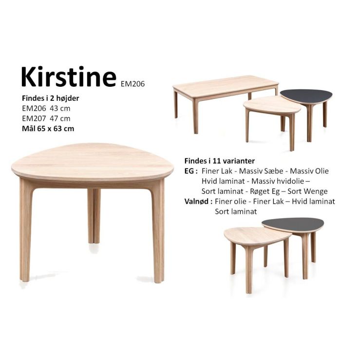 Flot nyt bord dansk produceret. Findes i 2 højder (43 - 47 cm ) så man kan sætte dem i sæt . Fantastisk Finish på træet. Findes i Eg og Valnød i mange behandlinger samt med overdel i Laminat i enten hvid eller nano sort : Mål 65 x 63