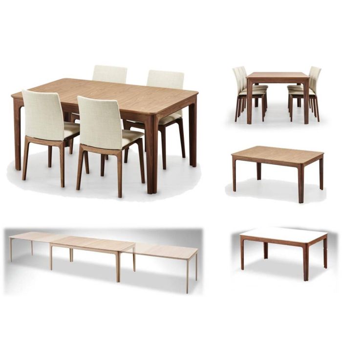 Spisebord 205 cm x 100 cm men som kan gøres rigtigt lang stabilt da benene følger med ud - Der følger 3 tillæg plader med ud og yderligere 3 kan tilkøbes. Der er designet stole, skænke og sofabord til bordet Vælg valgmuligheder for at finde prisen på den enkelte variant