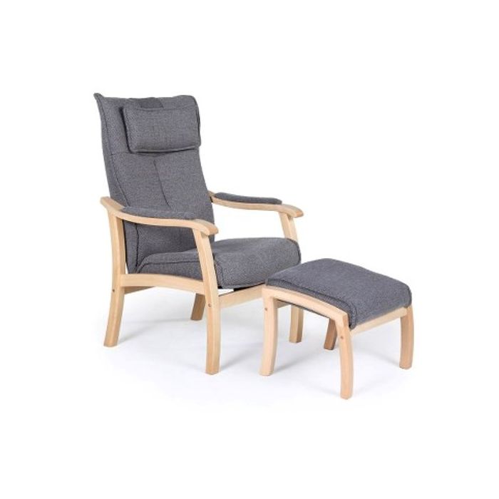 Lænestol med armpuder i massivt træ der tilfredsstiller behovet for ekstra siddekomfort .Stolen har nakke og regulerings-skrue. Mål Højde 109 cm, Bredde 70 cm, Dybde 69 cm, Dybde sæde 48 cm, Sidde højde 47 cm - Findes i bøg, Eg, Mahogni bejdset stel samt stof og læder i mange farver. Der kan tilkøbes en designet fodskammel til stolen
