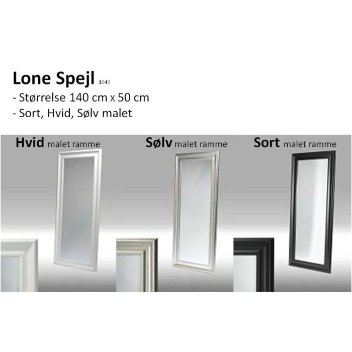 Klassisk malet spejl på 140 cm x 50 cm, Findes i Hvid, Sort og sølv malet