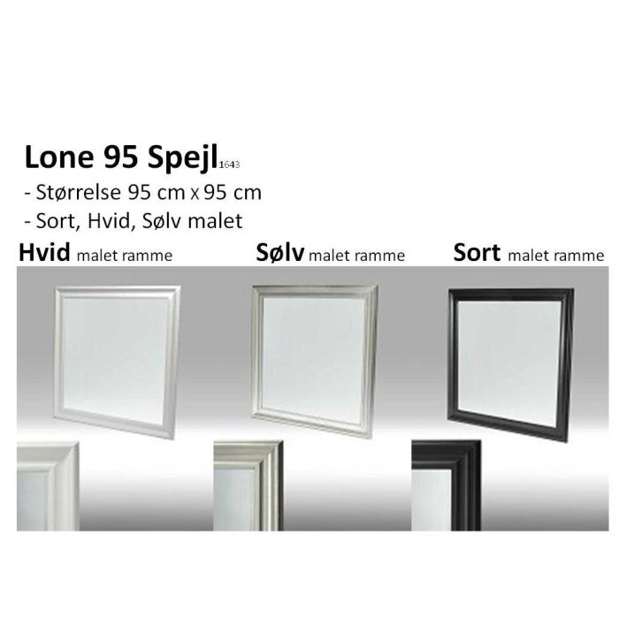 Klassisk malet spejl på 90 cm x 90 cm, Findes i Hvid, Sort og sølv malet