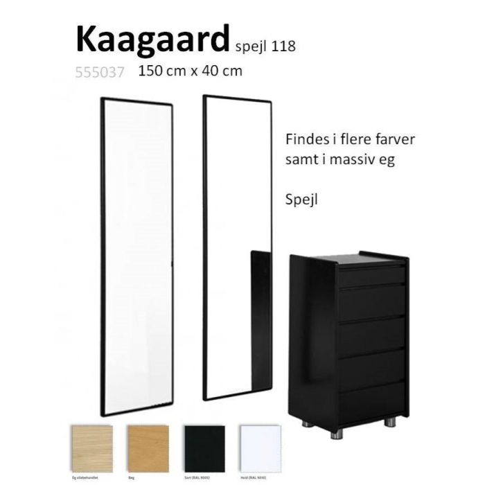 Flot spejl fra Dansk fabrik på 150 cm x 40 cm, Findes i Hvid, Sort, Bøg lak samt eg klar olie