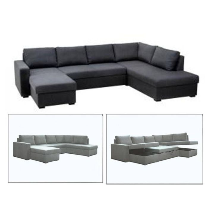 Sovesofa med U-corner - Højre eller Venstre. med 2 store magasiner i Chaiselongerne. Findes i mange farver