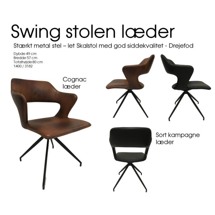 Swing spisebordsstol er lavet i læder med et sort metalstel.