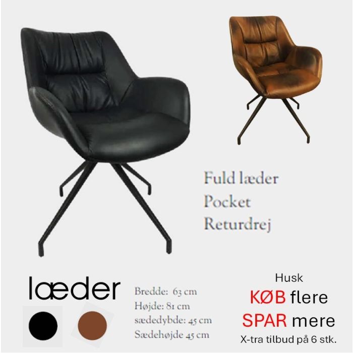 spisebordsstol i slidstærkt læder.med drejefunktion