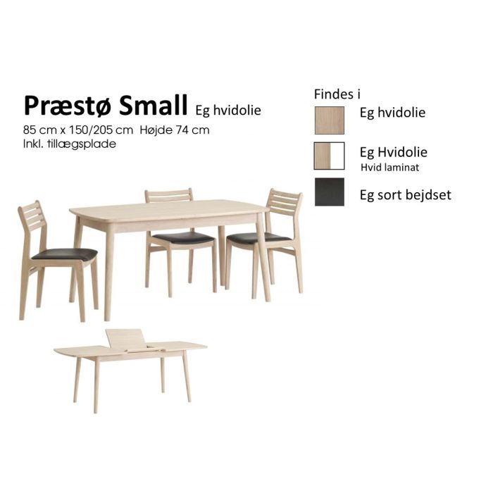 Flot Spisebord 150 cm x 85 cm Fremstår i et let og moderne design, der læner sig op af 1950’ernes populære retro stil. Spisebordet er inklusiv butterfly tillægplade, som gør det let og enkelt for alle at udvide bordet til 200 cm i længden. Føres i eg/hvid-olie samt sort bejdset Mål L 150 × B 85 × H 75 cm