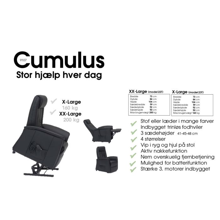 Stol med helløft der er bygget til at kunne klare fra 160 kg til 200 kg personer. Stolen kommer fra en af verdens største fabrikker i Tyskland der gennem mange år har specialiseret sig i spc. stole med funktioner. Stolen er med 3 kvalitets motorer hvor du kan styre Ryg, Fod og Løft op funktion hver for sig. Der er 5 års garanti på stolens funktioner. Findes i 200 forskellige læderfarver og 200 forskellige stof varianter, Væg varianter for at finde prisen