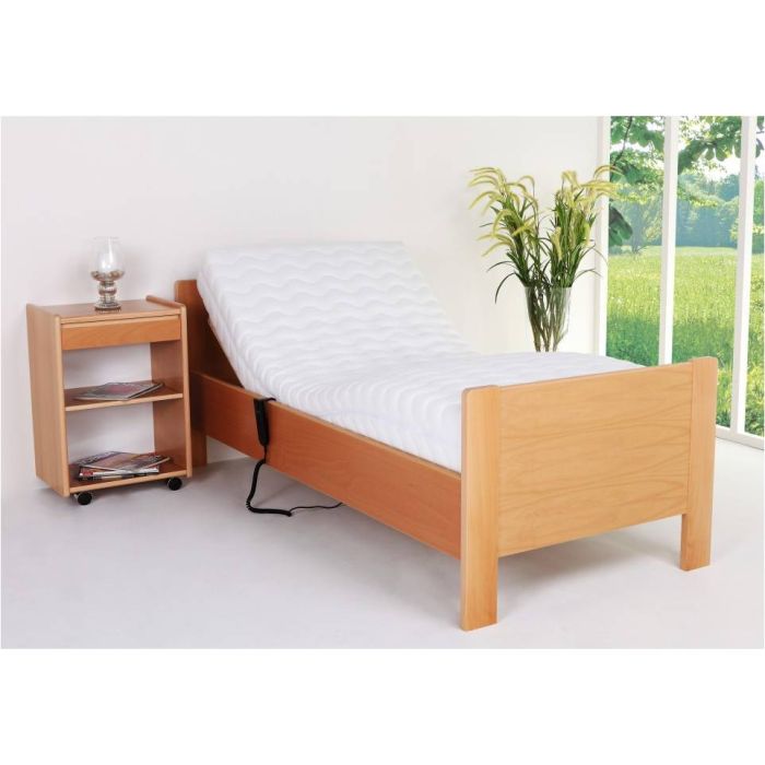 Komplet seniorseng fra dansk leverandør i rigtig god kvalitet. Sengen er bygget op med træsider og gavl som findes i flere højder. Der er lagt en kabelbetjent bund med fjernbetjening samt en fast springmadras med 25 mm topmadras. Der findes 3 forskellige kvaliteter af springmadras samt 3 typer topmadrasser. Prisen er inkl. vores Spring 500 madras samt polyester top madras. Sengen findes i bøg, Hvid, Eg eller brunbejdset samt i størrelserne ( Madrasstørrelser ) Bredde 80 - 90 - 100 samt i længderne 190 - 200 - 210