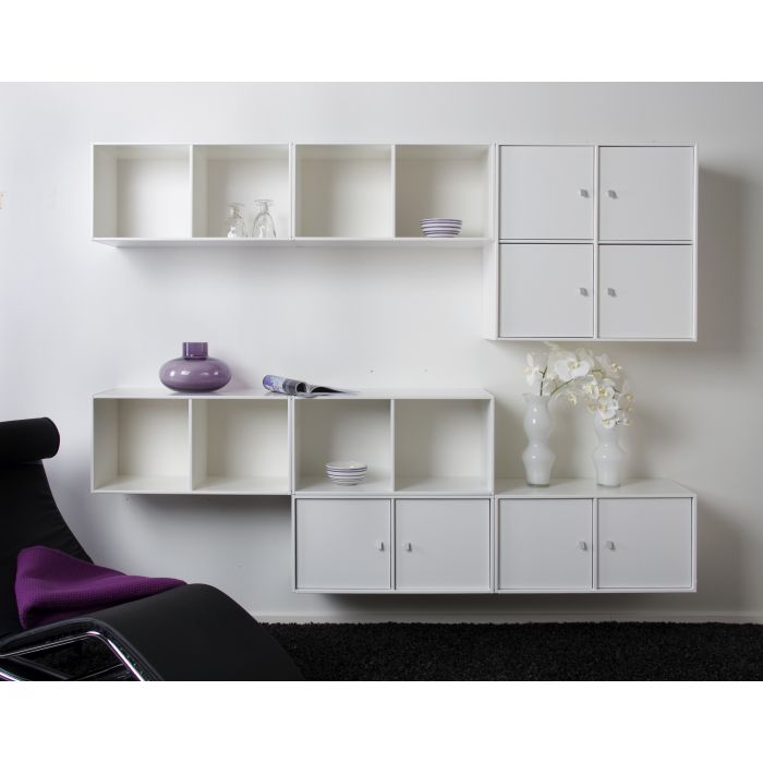 Square reol er et fantastisk reol system i lakeret hvid med mange muligheder. Grundmodulerne findes i 1/1 - 1/2 - 1/4 i forskellige indretninger. De kan hænges på væggen eller være på sokkel, hjul eller ben. Der er en stor liste over tilbehør til indretning til alle moduler Reolen findes også i mange farver Hvid, Sort, Grå, Rød, Lilla, Grøn. Vil man have tilbehør monteret fra fabrikken kan det godt lade sig gøre mod et mindre tillæg. prisen er på viste opstilling i hvid med tilbehør.