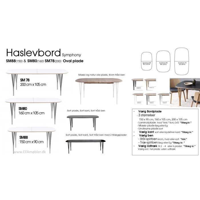 Symphony 78 - 80 og 88 spisebord med udtræk er lavet i kvalitetsmaterialer og designet i et moderne og let udtryk.