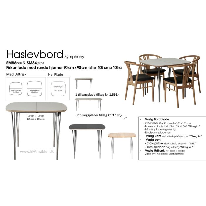 Symphony 86 og 84 spisebord med udtræk er lavet i kvalitetsmaterialer og designet i et moderne og let udtryk.