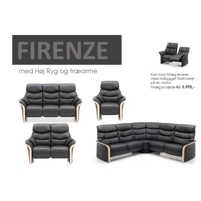 Klassisk Sofa Som enkelt look - Det er et byggesystem så du kan vælge størrelse samt gøre den til hjørnesofa Findes i stof eller læder i mange farver - Der kan bygge motor ind med indbygget fodhvilere ind i alle sæder mod tillæg - på stolen er der i prisen inkl. motor