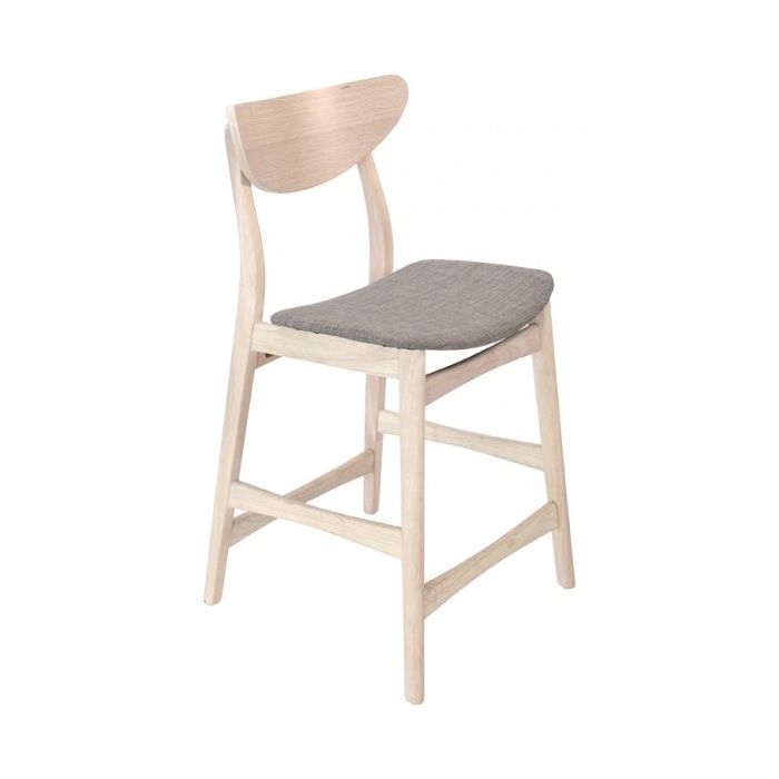 Barstolen William er fremstillet i en elegant og meget klassisk stil. Sædet er beklædt med gråt stof, og ryggen har en behagelig form. De høje ben danner et enkelt firkantet mønster på alle sider af stolen.